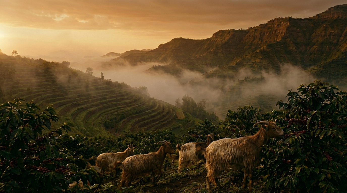 Our goat isn't just cute branding—it's history. Kaldi's goats were the first to discover coffee, dancing with energy after eating the cherries.